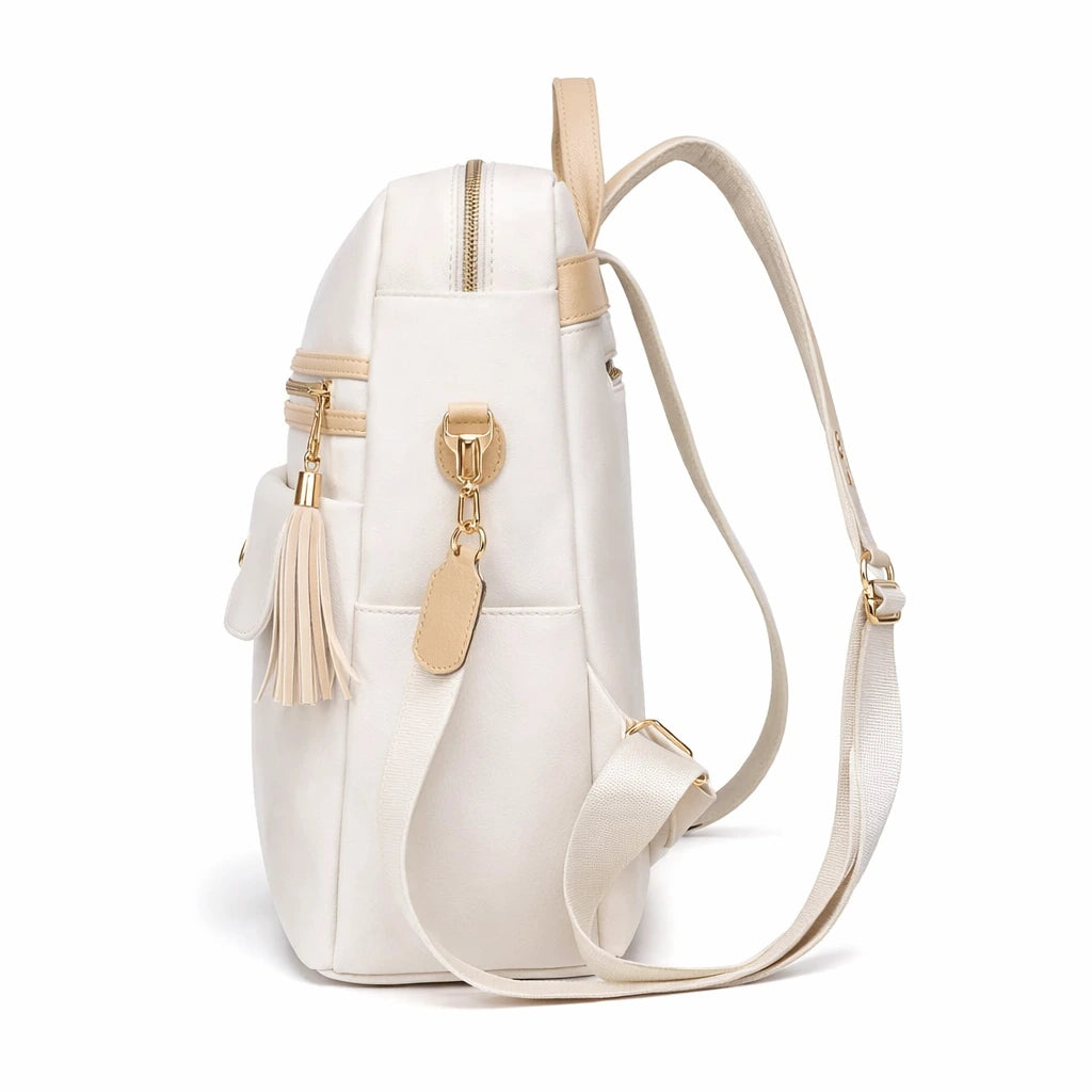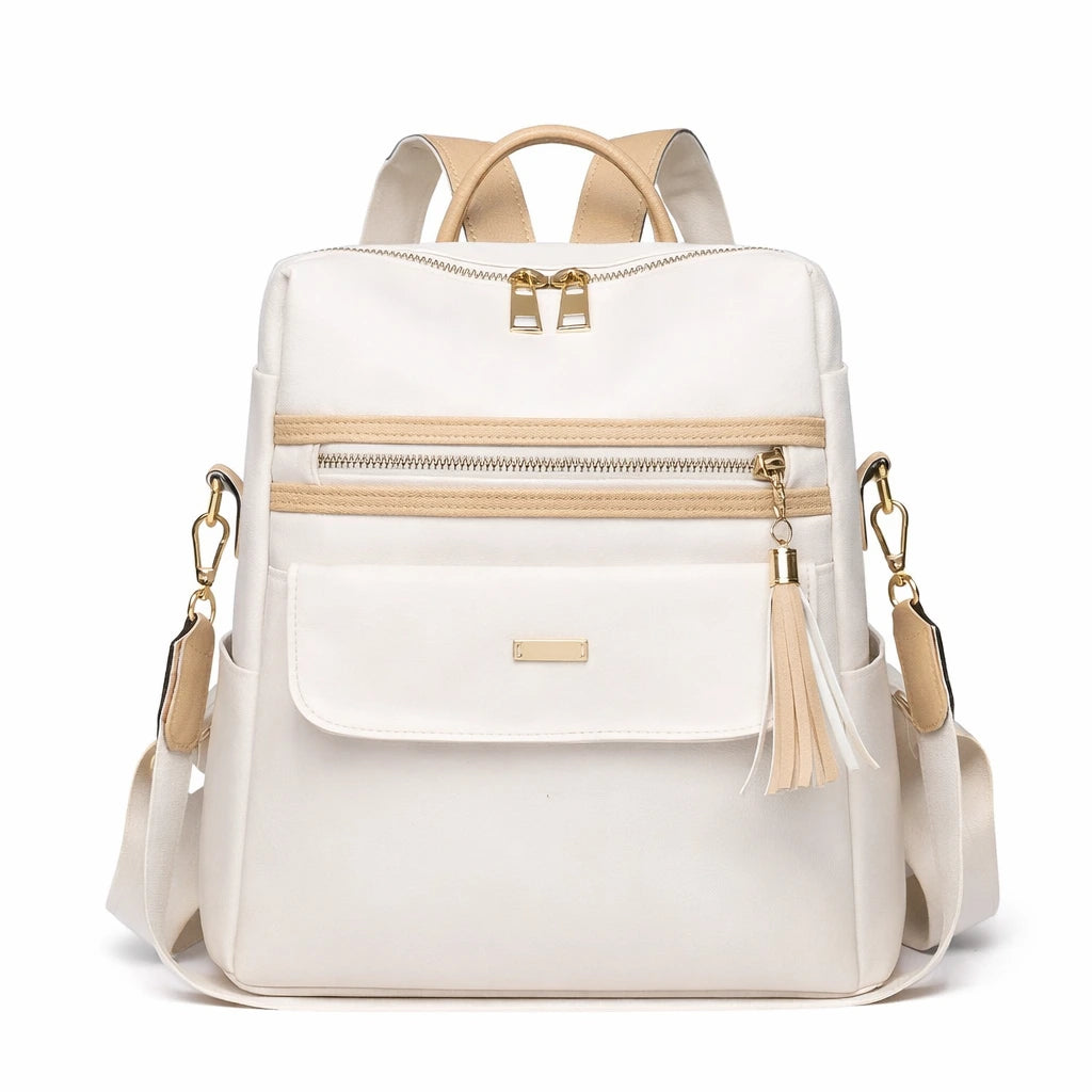 Plecak AURIA Damski Miejski Biały z Kieszenią na Zamek i Regulowanymi Paskami